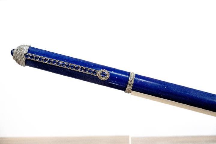 What inspired Biren Vaidya to create and design this wonderful trophy, handcrafted in Rose’s atelier, was "The Power of the Pen." This one-of-a-kind treasure is studded with: